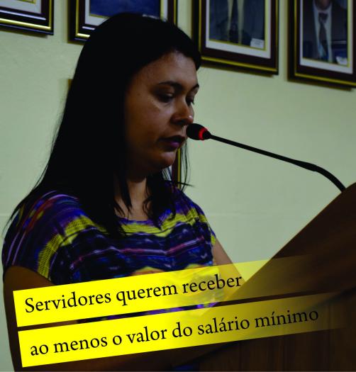 A servidora pública Adriana Cardoso, representou a classe em um desabafo, no qual solicitou melhorias salariais, a principal delas é de que os funcionários ganhem ao menos o salário mínimo. “Fizemos um concurso, cumprimos nossos deveres, não faltamos, pois senão perdemos até o Vale Alimentação. Esta situação se arrasta há anos, e agora onde está o Sindicato para nos representar? Queremos ao menos ganhar o valor do salário mínimo, caso contrário, vamos entrar em greve”, colocou a funcionária.