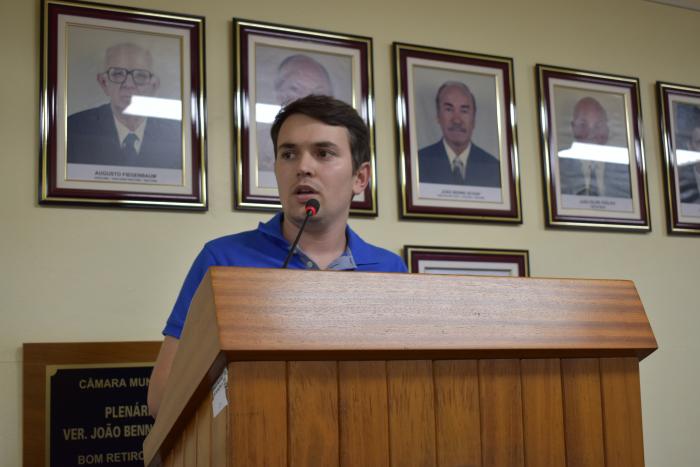 O Vereador Alessander Negreiros Fritscher (PSB) fez a Indicação 17/2018, para que sejam executas obras para instalação de novo painel informativo (mural), junto a entrada das capelas mortuárias, que seja luminoso e tenha visibilidade em ambos os lados, mais centralizado. Igualmente executem limpeza das calhas, pinturas e melhorias no local.