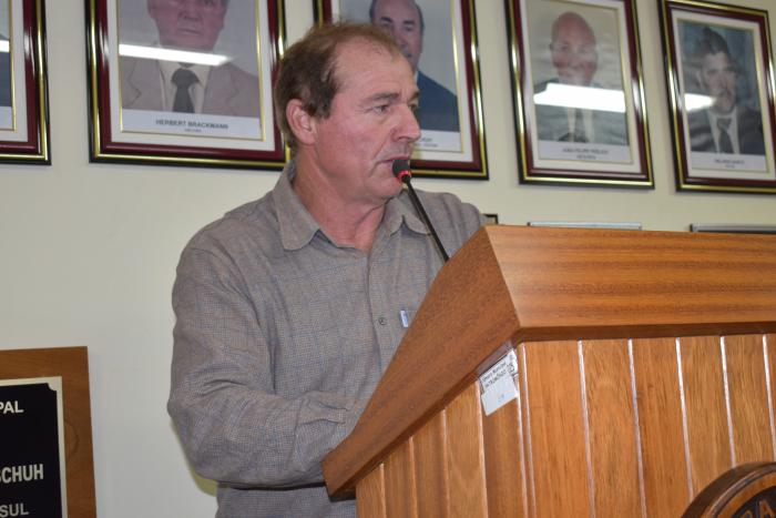 Na primeira, Adilson pede que seja estudada a possibilidade de remoção de um poste em frente à residência do senhor Ivo Klunk, cito a Rua Henrique Schmidt, nº 667, que atualmente está em mau estado de conservação, podendo causar acidente a qualquer momento e serve apenas para telefonia.