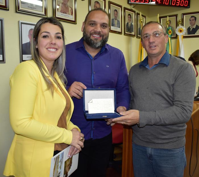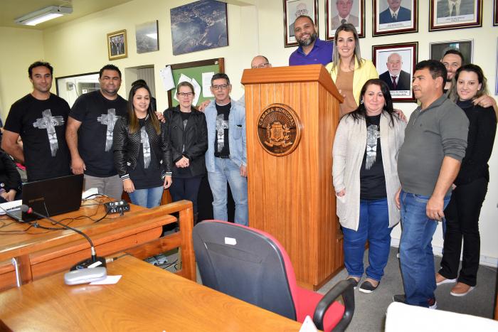 O Pastor Fernando Nascimento Júnior e a Pastora Danielle Guimarães Nascimento receberam uma placa do Vereador autor do Decreto 02/2019, Airton Giacomini (PDT). Após, emocionado, o Pastor agradeceu aos Vereadores e a comunidade, em nome de todos os seus fieis que se fizeram presentes.