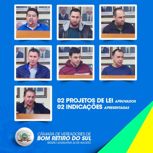 Na última sessão ordinária, quatro matérias foram aprovadas pelos legisladores municipais, sendo dois Projetos de Lei de origem executiva e duas indicações de melhorias. Sete dos oito vereadores presentes utilizaram a tribuna da Casa Legislativa, que apenas não contou com a presença do vereador Filipe Turatti, que viajou a Brasília em busca de recursos para o município.