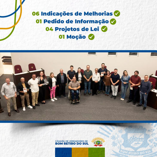 Na última terça-feira, 13 de maio, a Câmara de Vereadores de Bom Retiro do Sul promoveu mais uma sessão ordinária, marcada por debates relevantes à comunidade e pela apreciação de importantes matérias legislativas. A sessão teve como destaque duas participações na Tribuna Livre, além da aprovação de indicações, pedido de informações, moção de apoio e Projetos de Lei do executivo.