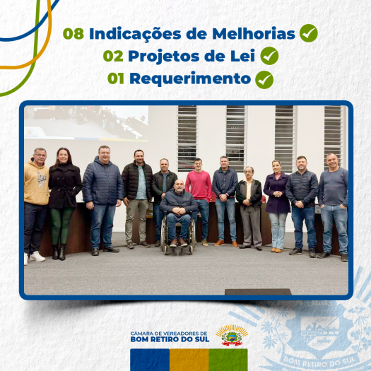 A Câmara Municipal de Bom Retiro do Sul segue comprometida com as demandas da população e reforça a importância da participação da comunidade no acompanhamento das ações legislativas.