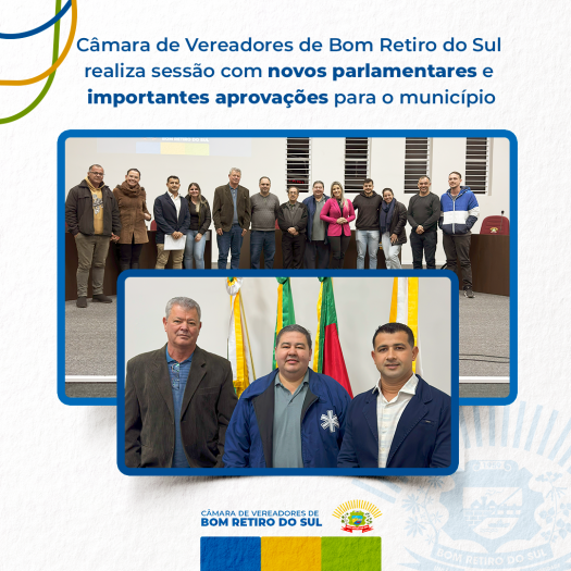 A Câmara de Vereadores de Bom Retiro do Sul realizou, na última terça-feira, 5 de agosto, uma sessão legislativa com importantes pautas voltadas ao desenvolvimento do município e à valorização da comunidade. A reunião foi marcada pela posse de três novos parlamentares suplentes, aprovação de matérias relevantes, anúncio de investimentos e manifestações de apoio e pesar.