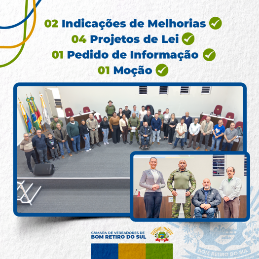 A sessão reforçou o compromisso do Legislativo em fiscalizar, propor melhorias e valorizar iniciativas que impactam diretamente a vida da comunidade de Bom Retiro do Sul.