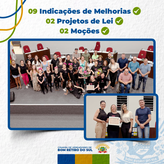 A sessão reforçou o compromisso do Legislativo com ações que promovem qualidade de vida, desenvolvimento social e valorização das iniciativas culturais em Bom Retiro do Sul.