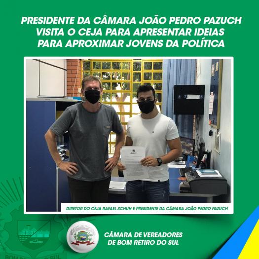 O Presidente da Câmara João Pedro Pazuch juntamente do Diretor da Câmara Marcelo Kerber, visitaram o Diretor do Colégio Jacob Arnt Rafael Schuh para apresentar ideias referentes a participação dos jovens na política e pedir também sugestões para incrementação de projetos.